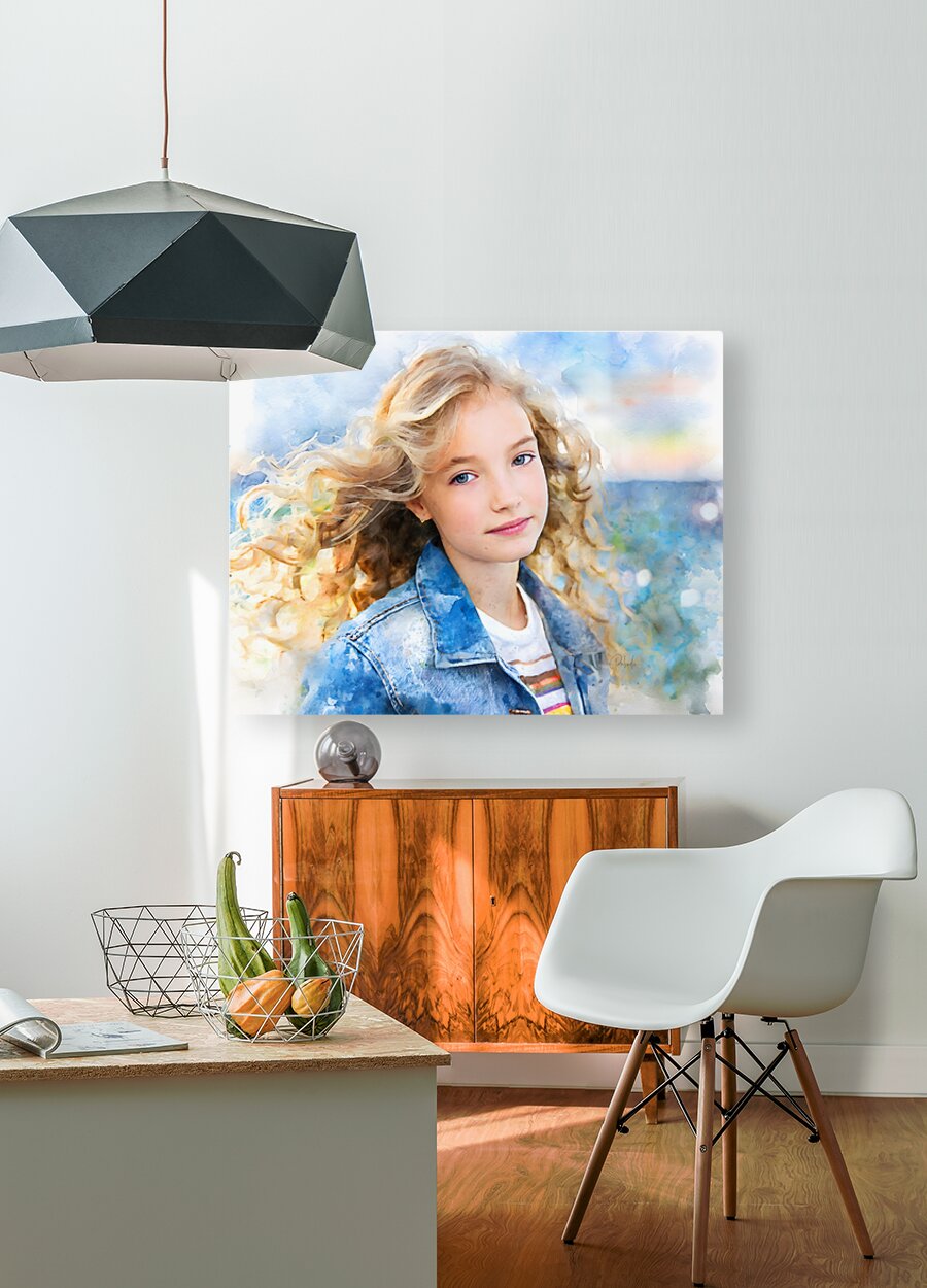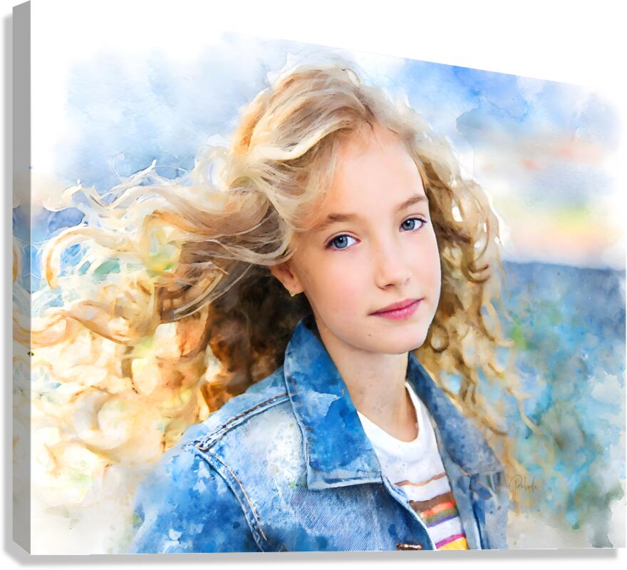 This young girl has long blong curls that are being tossed around by the strong ocean breezes. Her lovely blue eyes are gazing out at you and she has a half smile on her lips....a typical teenage look that you have interrupted them. This captivating Pabodie Artist Print can be printed onto the media of your choice and in your preferred size. Perfect for your home or office, select your custom media to fit that waiting wall.