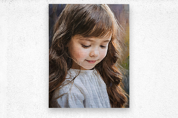 Jessie is a precious angelic looking child with long brunette hair and extra long lashes to match. This touching painting can be ordered in your custom size choice and media options include canvas, acrylic, wood, metal, wall murals, framed, and more. Choose this top selling Pabodie Artist Print for your home or office today.