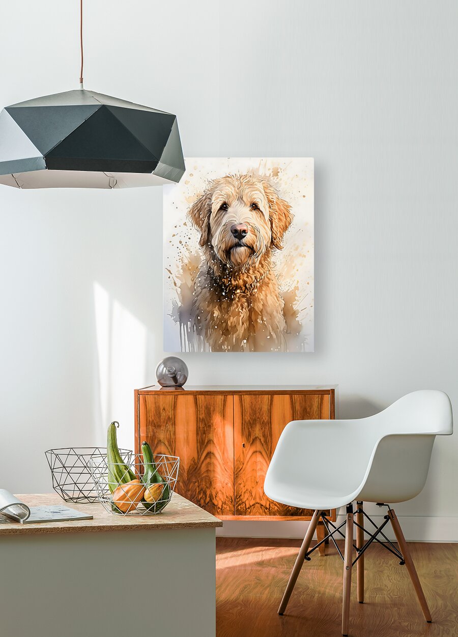 Oscar the labradoodle is one of our neighborhood dogs and chock full of fun and personality. He loves to spend time in his pool and at the beach playing frisbee with his Mom. As you can tell by his expressive eyes he wears his heart on his sleeve. Oscar Boy I is available in your choice of media and sizes. Choose your favorite mix for your home or office.