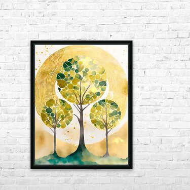 An abstract painting of three trees enveloped by an arch of gold to create a force of nature... one of unity. Perfect for a home or office, select fr...[+]