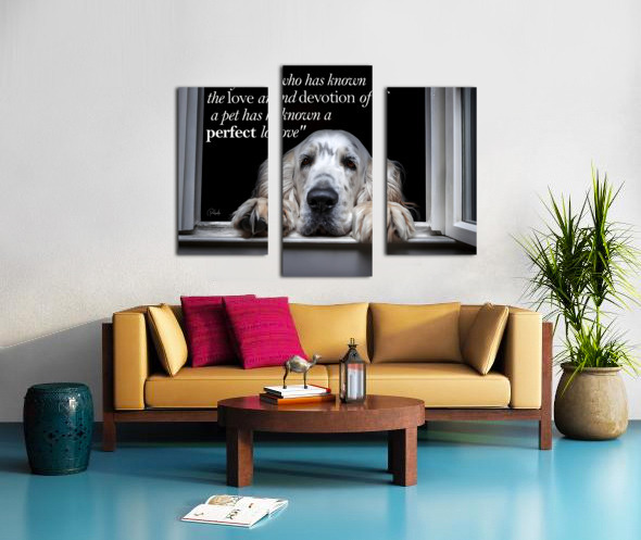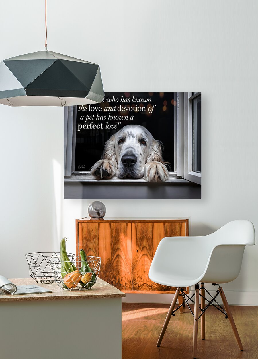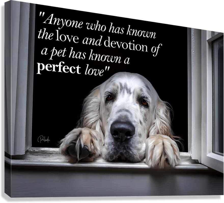 "Anyone who has known the love and devotion of a pet has known a perfect love" This moving artist print is available in your choice and size and media. Bring this imagery and love of pets and animals into your home or office today.