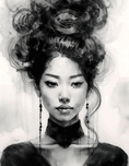 There is no denying this is a striking looking Asian woman. Her hair is piled high with curls falling down and she is wearing long earrings and a cho...[+]