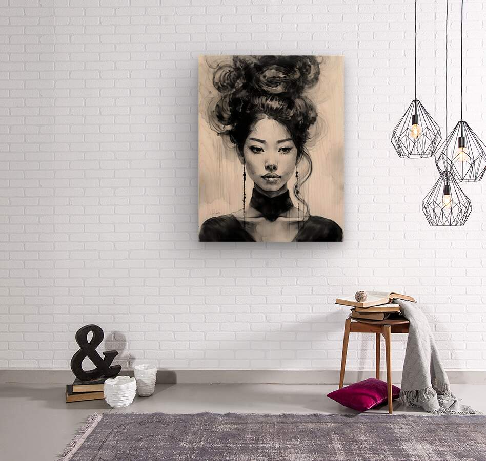 There is no denying this is a striking looking Asian woman. Her hair is piled high with curls falling down and she is wearing long earrings and a choker necklace to complete the ensemble. She is definitely ready for a night out. Part of the Faces series you can choose your desired media and size.
