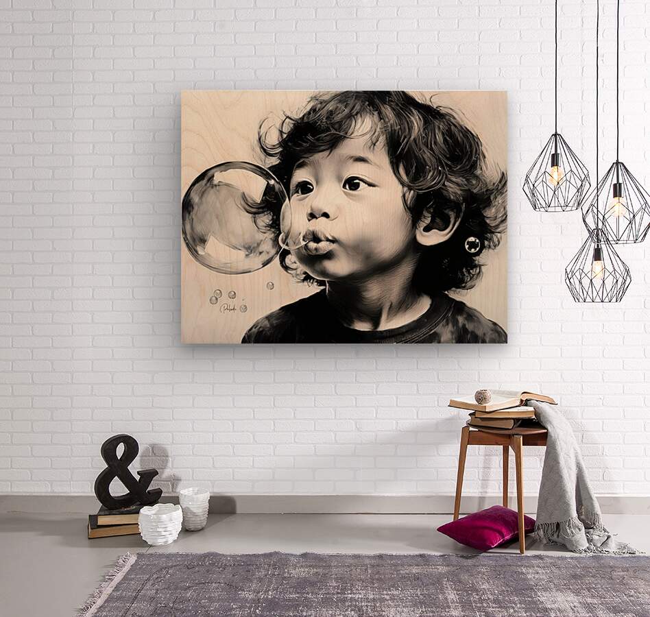 This funny little boy is having a great time blowing bubbles and watching the reflections in them as the float around his sweet face. This artist print is one in my Faces Collection and one of the most popular. Hang him alone or with another from the same collection. Avaiable in your choice of size media and finishes.