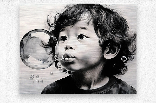 This funny little boy is having a great time blowing bubbles and watching the reflections in them as the float around his sweet face. This artist pri...[+]