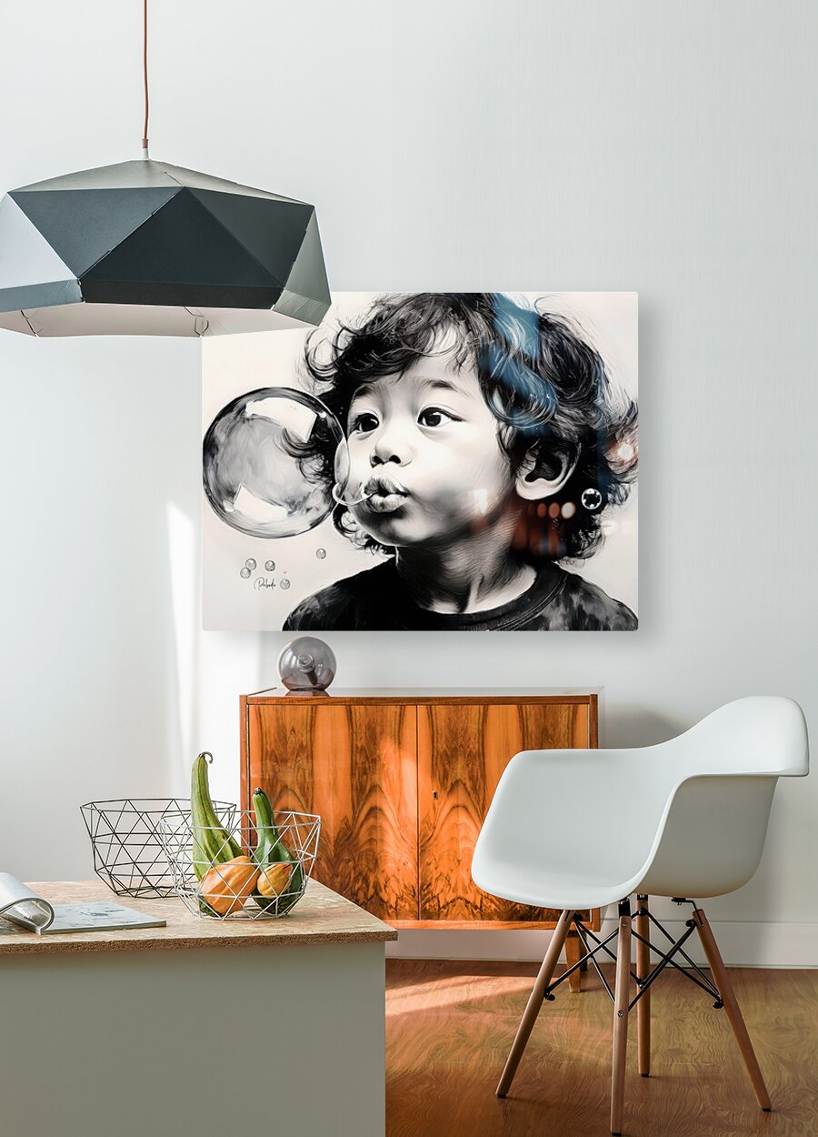 This funny little boy is having a great time blowing bubbles and watching the reflections in them as the float around his sweet face. This artist print is one in my Faces Collection and one of the most popular. Hang him alone or with another from the same collection. Avaiable in your choice of size media and finishes.