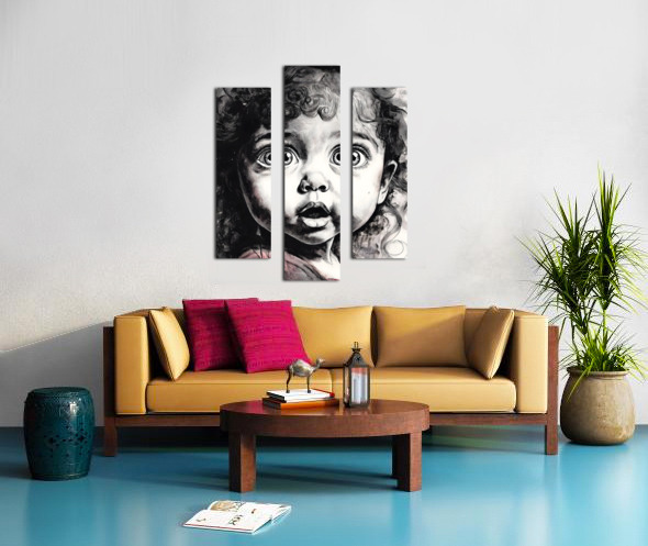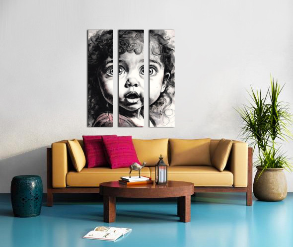 This comical toddlers face says Oh My! Her eyes are round and bright in suprise and her lips mouth the word OH! Her curly hair hangs in ringlets around her face and brow and she just makes you smile. Available in many media and sizes choose what works best for your decor. ALso consider hanging this with one or more from the Faces Collection to create a wall art to remember.