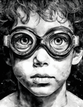 This young boy in his swimming goggles make a funny portrait as he stares directly at the viewer. His eyes are magnified by the lenses and he looks ready to get back to his swimming. Check out the entire Unique Faces Collection to find one or more to hang with this artist print to create a fabulous wall of art. Select your media and size preference and all art ships free to the US and Canada.