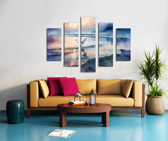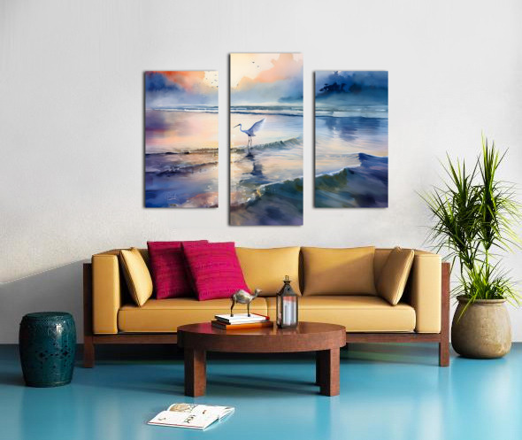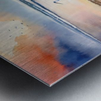 This beautiful graceful egret is hunting for his next meal. The watercolor shows him in the sunset lighting along the waters shoreline. He is perched in the lapping waves and is getting ready to strike quickly for the fish he sees. This colorful Pabodie print is available in your choice of media and size and ships free to the US and Canada