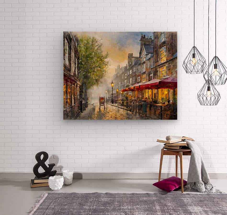 A scenic painting of a cobblestone street in London as the morning sun makes an appearance and restaurant tables are made ready for the breakfast crowd. Available in your choice of sizes and media, bring this cityscape in your home or office today. All art ships free to the contiguous US and Canada.