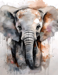 This sweet baby elephant has a whimsical look done with watercolor and ink. His eyes and trunk frame his husks and his ears are expressive and decla...[+]