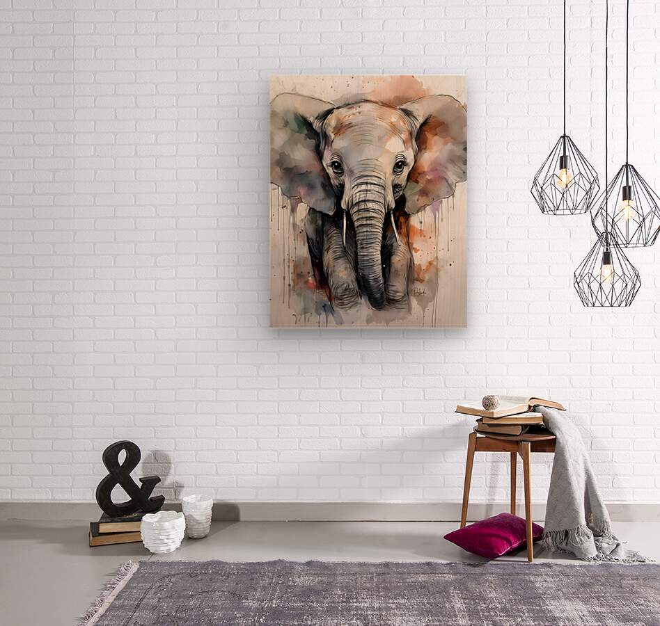 This sweet baby elephant has a whimsical look done with watercolor and ink. His eyes and trunk frame his husks and his ears are expressive and declare his youth. Available in your choice of media this Pabodie Artist Print is yours in your choice of size and media. Perfect in a child's room book or room of your choice. All art ships free to the US and Canada.