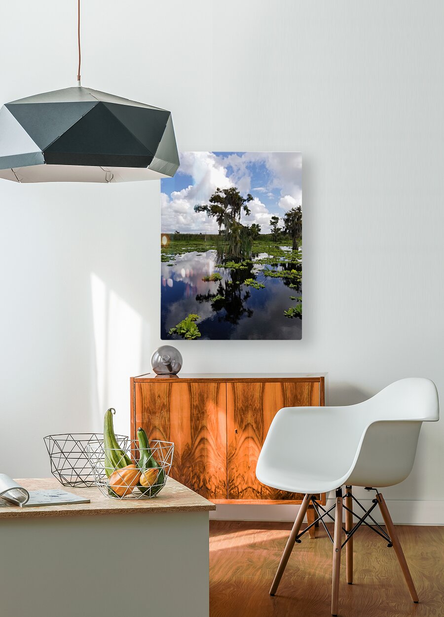 The beautiful colors in this Pabodie photo are reflecting this magical Osprey nest hidden at the top of this bald cypress tree. This huge Florida nest is home to a pair of Ospreys that mate for life and spend decades in their nest together. The nests can survive hurricane damage and are truly a marvel of engineering. Available in your choice of media sizes and finishes this photo is the perfect edition to your home or office.