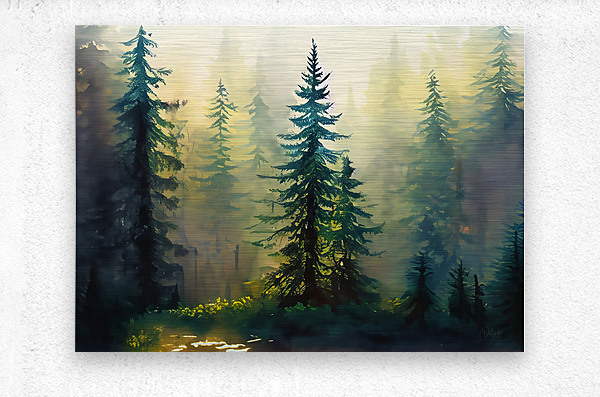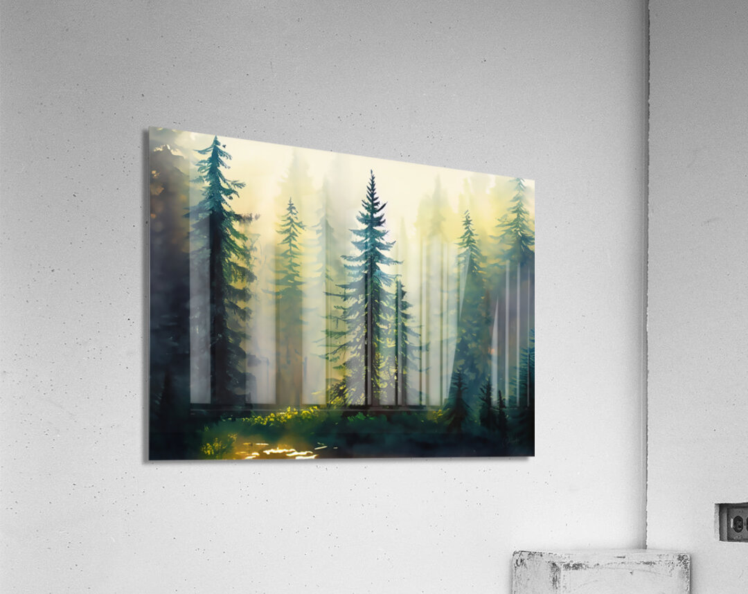 This is a watercolor print of tall fir trees in a forest with morning sunlight filtering down thgough and into the trees. This peaceful scene is both calming and refreshing and will sooth whatever ails you! Available in your choice of size, select your desired media and finishes and bring this lovely Pabodie Artist Print into your home or office.
