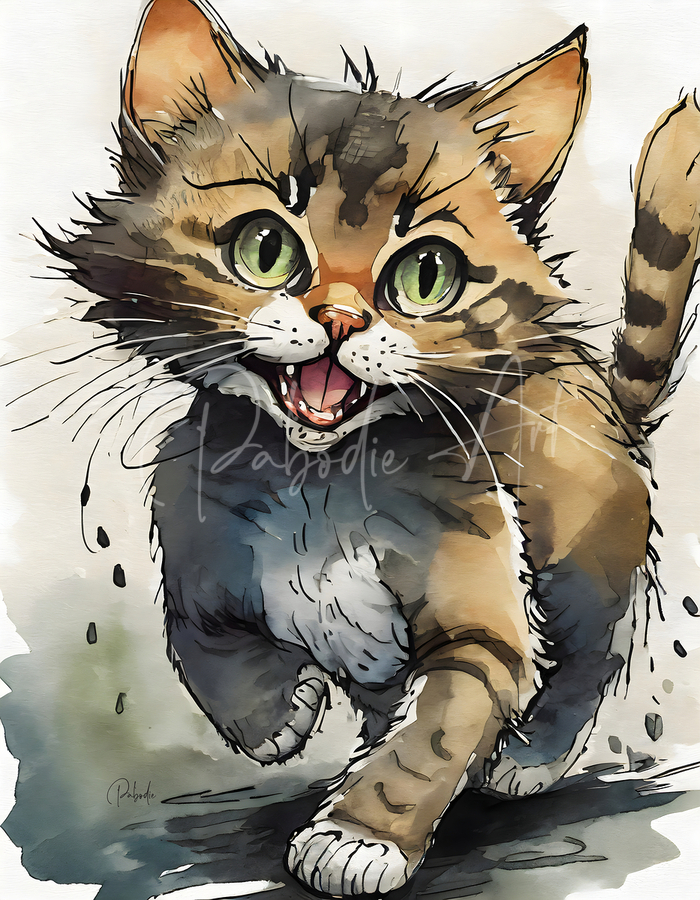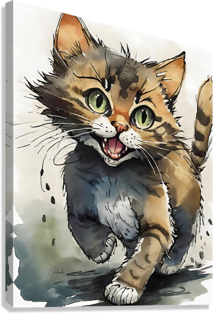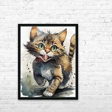 This fine feline is strutting her stuff and is a happy girl! She is a talker and will talk to anyone to tell them about her day. She has amazing big green eyes that capture your heart instantly. This is one in a series of animal ink washes available. She looks great on her own but very exceptional when hanging with one or more from the same collection. Create your own stunning wall of art and choose from many possible media and sizes to create your masterpiece.