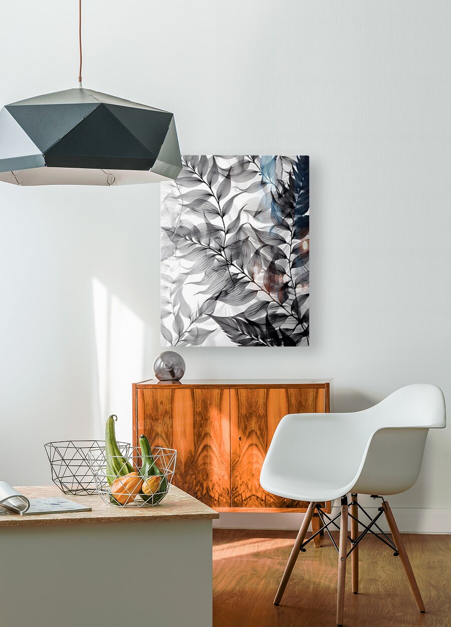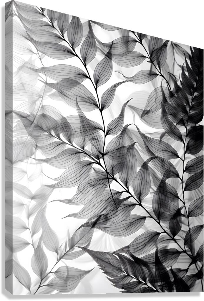 These black and white leaves and their inherent patterns blend transparently together to create lovely imagery. Part of a series, these pieces hang well together or easily stand alone. Simply choose your desired media sizes and finishes to create your own custom works of art to fit perfectly into your home or office.