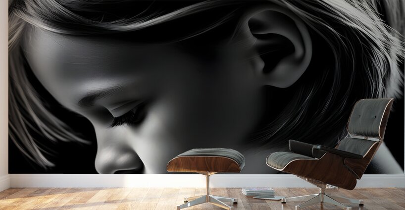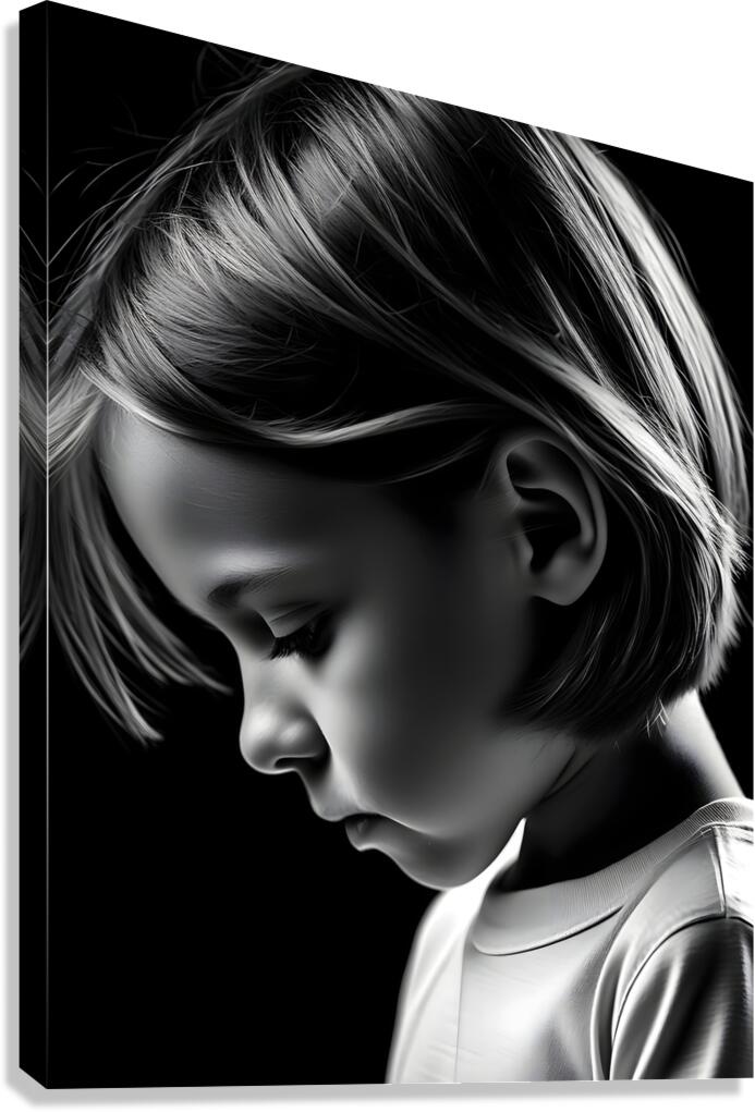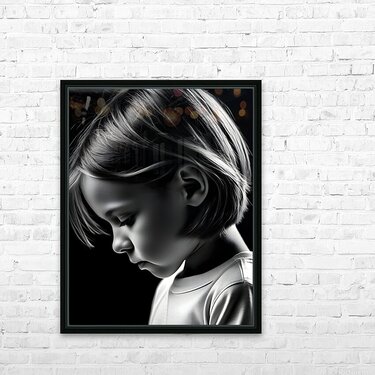 This beautiful little girl is deep in thought in this Black & White. Her short hair is pushed behind her ear and she is looking down in profile. Thi...[+]