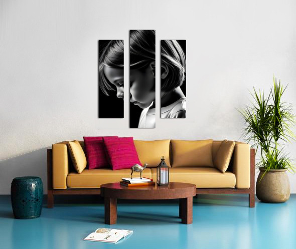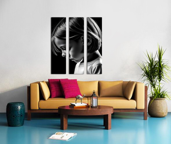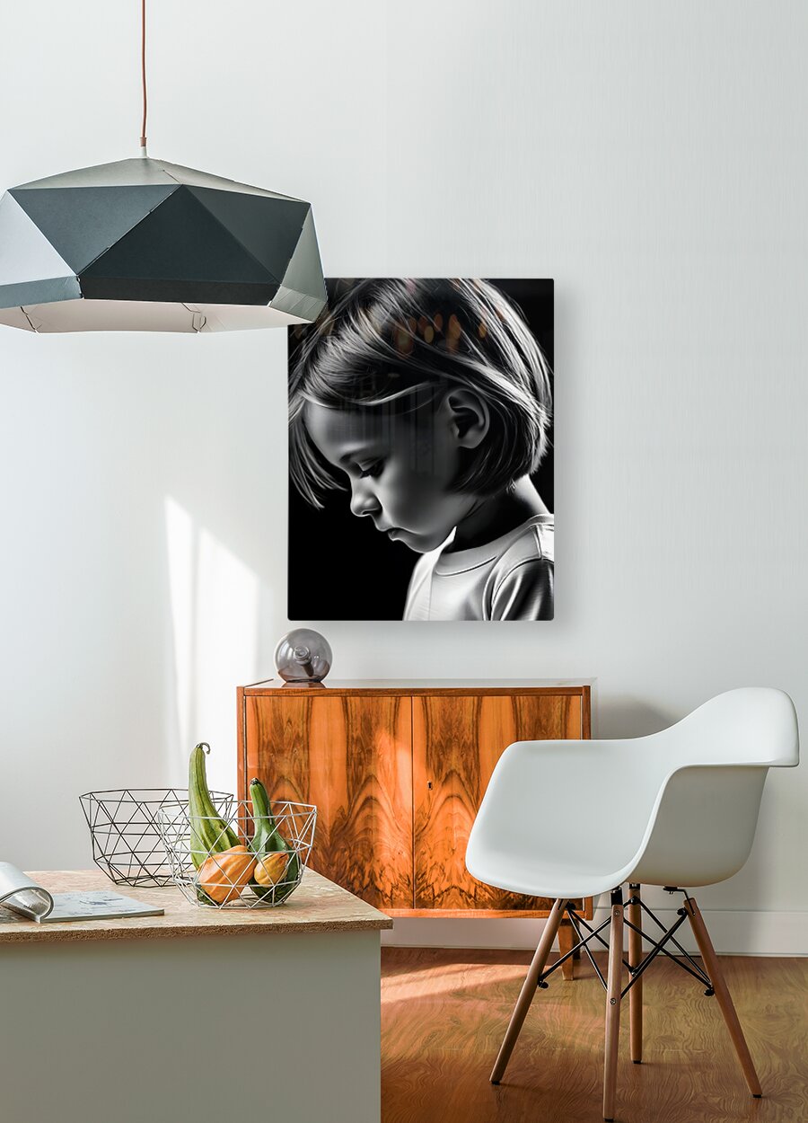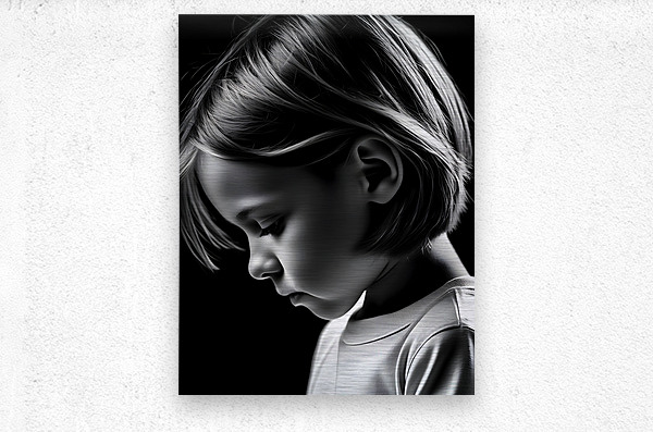 This beautiful little girl is deep in thought in this Black & White. Her short hair is pushed behind her ear and she is looking down in profile. This is a mate to her brothers image called Eyes To The Sky. Paired together they are stunning and each is powerful as well when hung alone. Choose your desired media, sizes, and finishes for your waiting wall.