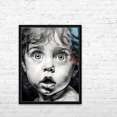 What a funny baby with his bright eyed look and suprised lips! This sweet toddler is one in my Faces collection all of which are about people and their facial expressions and unique appearances. Hang them together or alone by choosing your media preference and size.