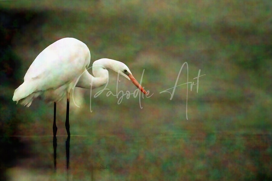 This beautiful digital watercolor depicts the elegant egret who can be found around most bodies of water. Using the greens from the wooded area around...[+]