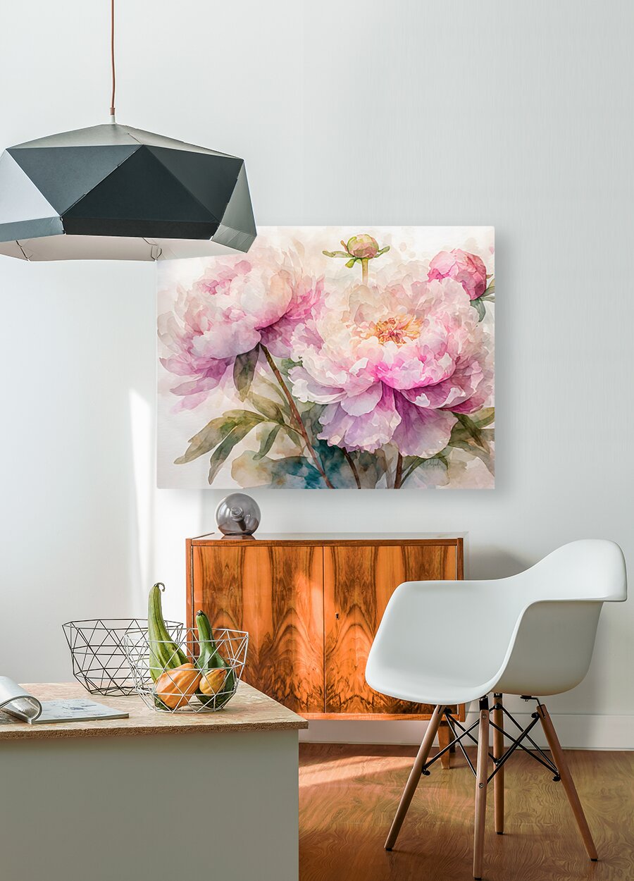 Pour obtenir "Peonies Watercolor" dans une impression encadrée.