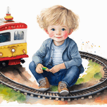 This blond haired toddler is sitting in the middle of his train track as he is repairing his beloved train. This artist print is one of my childrens ...[+]