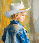 This little guy is sporting his favorite white cowboy hat and his well worn jean jacket and he has cowboy genes in his blood. He was born a cowboy an...[+]