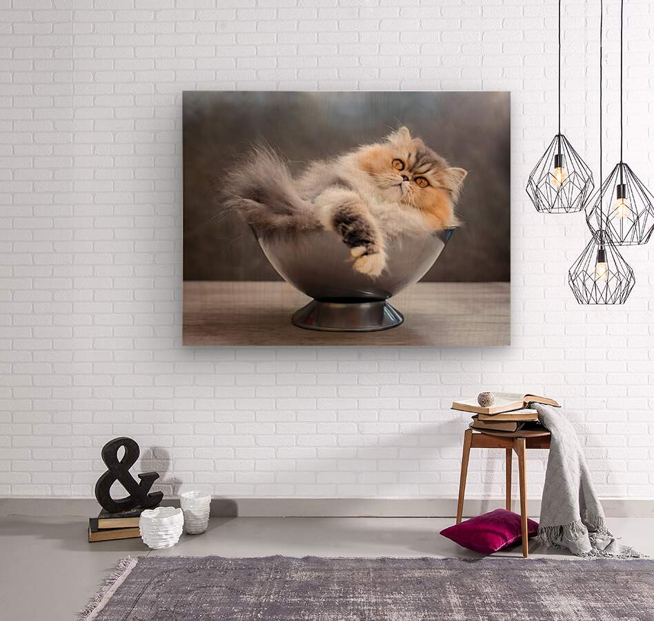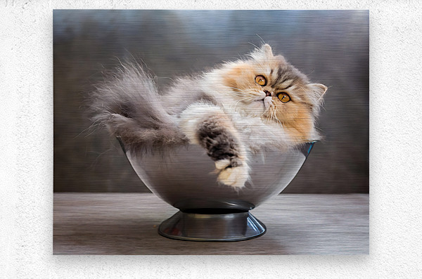 Cat lovers can appreciate this Pabodie photo of a cat curled up in into a bowl sitting on a table. After all, it is their nature to seek out those perfect spots for napping even if it means forbidden areas like table tops. But then you see their face and cannot bear to punish them. So you smile and look at those amazing eyes, shake your head and your heart melts with feelings of love. Bring this amazing pussy cat into your home or office in your choice of size and medium.