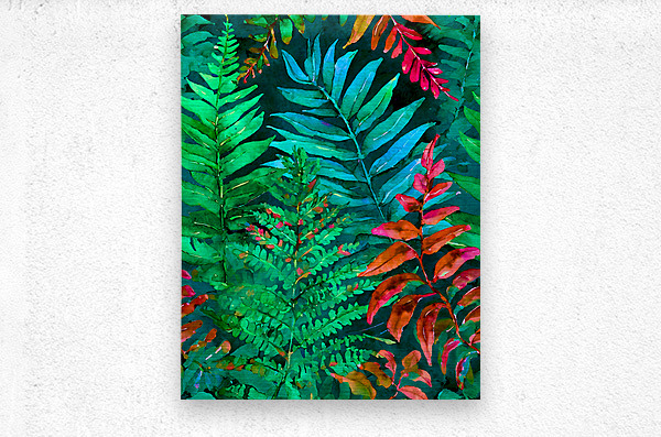 These tropical leaves form creative patterns across the paper in this watercolor rendition. Aquas, reds, orange, and green, combine for a lovely horticulture painting. One in my series of Tropical leaves these easily hang by themselves or look stunning when hung with one or more in the series. Choose your favorite media and size to create an artistic wallart impression.