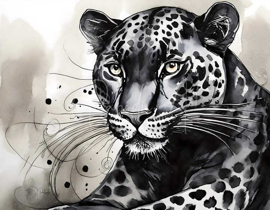 The stare from this panther is arresting and you know she means business. This beautiful big cat is one in a series of Ink Wash Animals and can easil...[+]