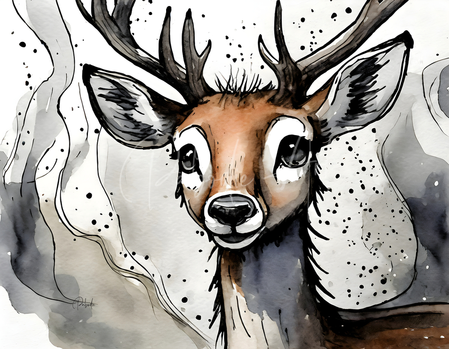 This young deer has large soulful and expressive eyes, and is smiling and ready for his day. He is one in the Ink Wash Animal Series and looks even m...[+]