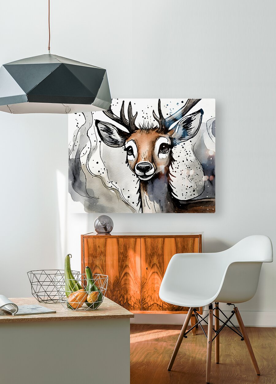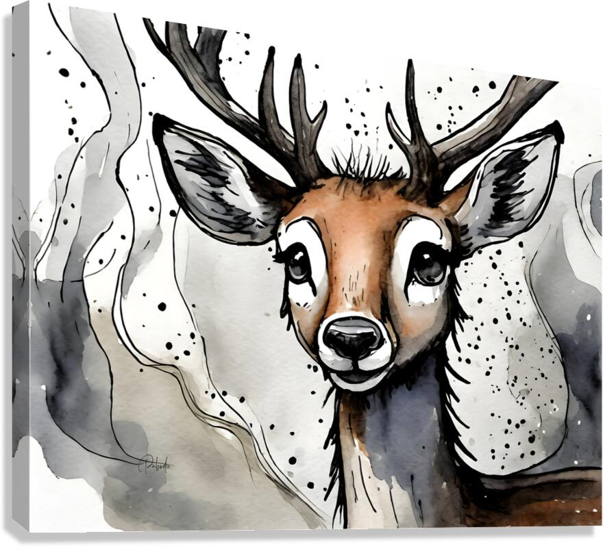 This young deer has large soulful and expressive eyes, and is smiling and ready for his day. He is one in the Ink Wash Animal Series and looks even more spectacular when grouped with one or more in the series. Choose from many media choices in your preferred size.