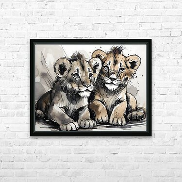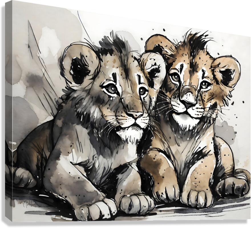 These precious lion cubs are just babies discovering the world around them. They love to play and torment each other and are perfect for your child's room, classroom, and/or combined with one or more from my series of Ink Wash Animals. There are many media types and sizes available to create your perfect wall of art.
