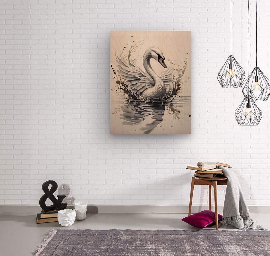 The Swan Ink Wash  Wood print