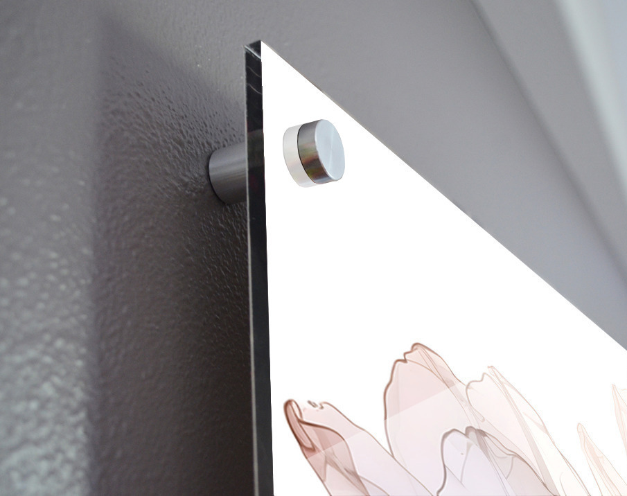 Printed to the edge - Ready to hang - provided with 4 premium polished aluminum stand off ( wall screws and mounting hardware provided )