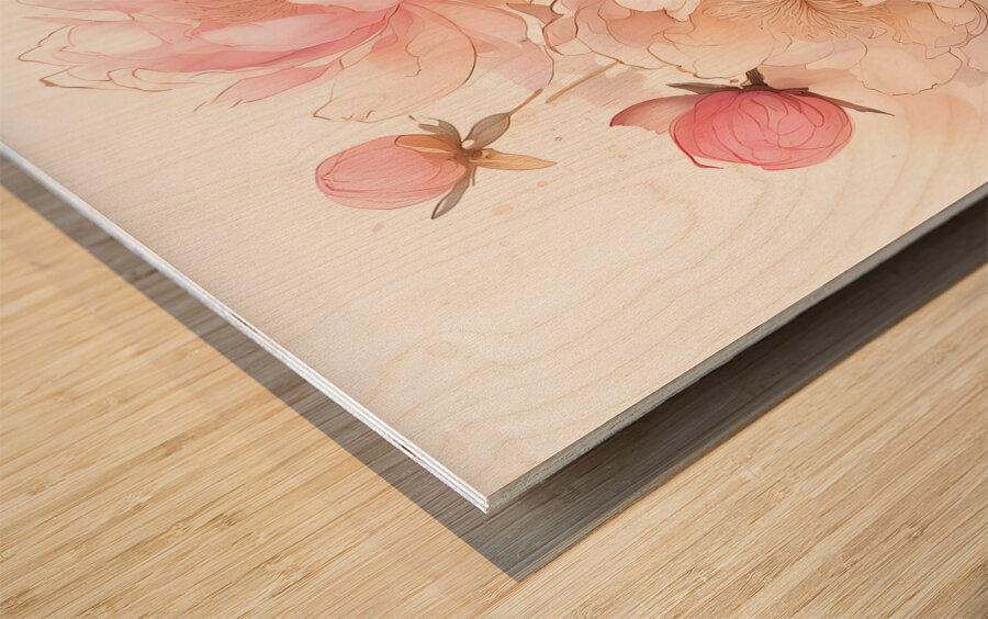 Peonies Ink Wash II  Wood print