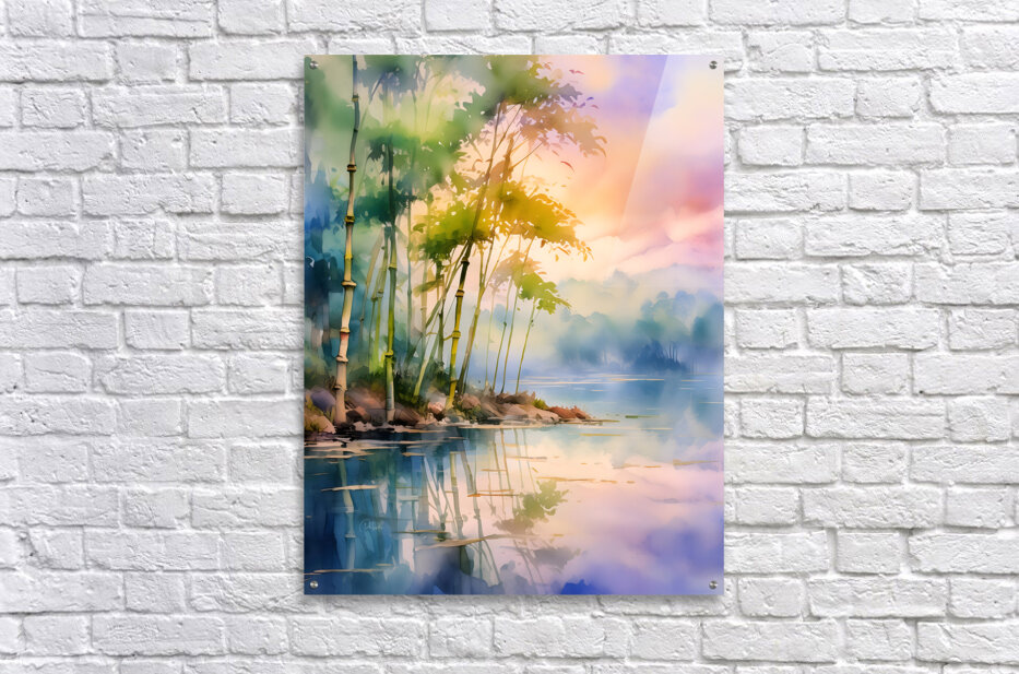 These bamboo trees along the shoreline are absorbing the morning glow from the skies of pinks yellows and blue. It all reflects into the waters below creating a rainbow of imagery and color. Bring some nature and color into your home or office. Choose your desired media and sizes and create your custom piece of art.