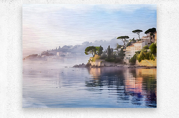 This is a quiet and tranquil scene along the French Riviera. The waters are still with barely a ripple and the homes whose architecture is built into the hills are visable with their lush landscaping. Everything is reflected into the waters below on this serene misty morning. Bring this lovely view of France into your home or office in your choice of size, media, and finishes. Its quality and imagery will last for generations to come.