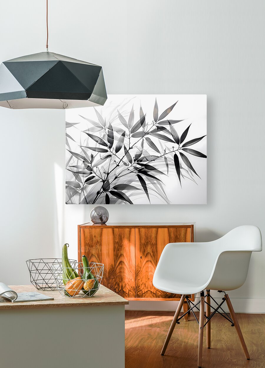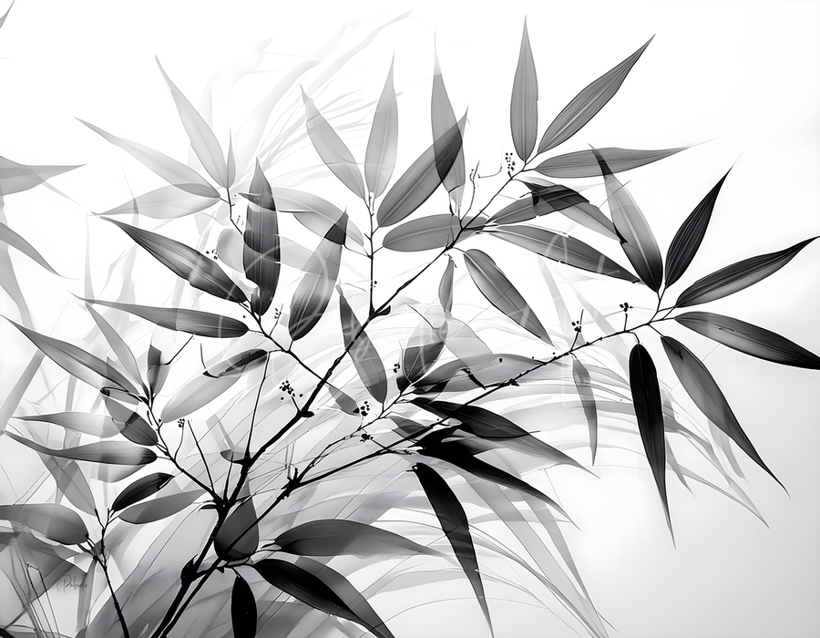 Layers of bamboo leaves create a lovely pattern of contrasts in black and white. This artist print is perfect for your home or office. You can select your media of choice and size and complete your art with a selection of finishes for the perfect touch. This high quality art will be in your collection for generations.