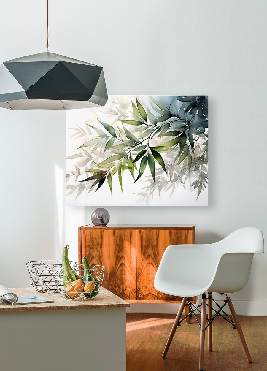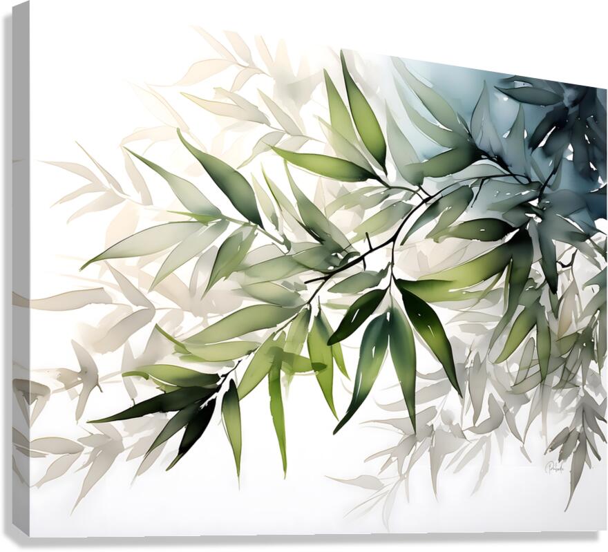 Delicate bamboo leaves are layered in to create this splash of green, grays, and blues. Straight from the landscape, this Pabodie Artist Print is yours simply by selecting your desired media and size. Bring this into your home or office for a sophisticated natural look.