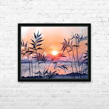 The Setting Sun Ink Wash Picture Frame Printing