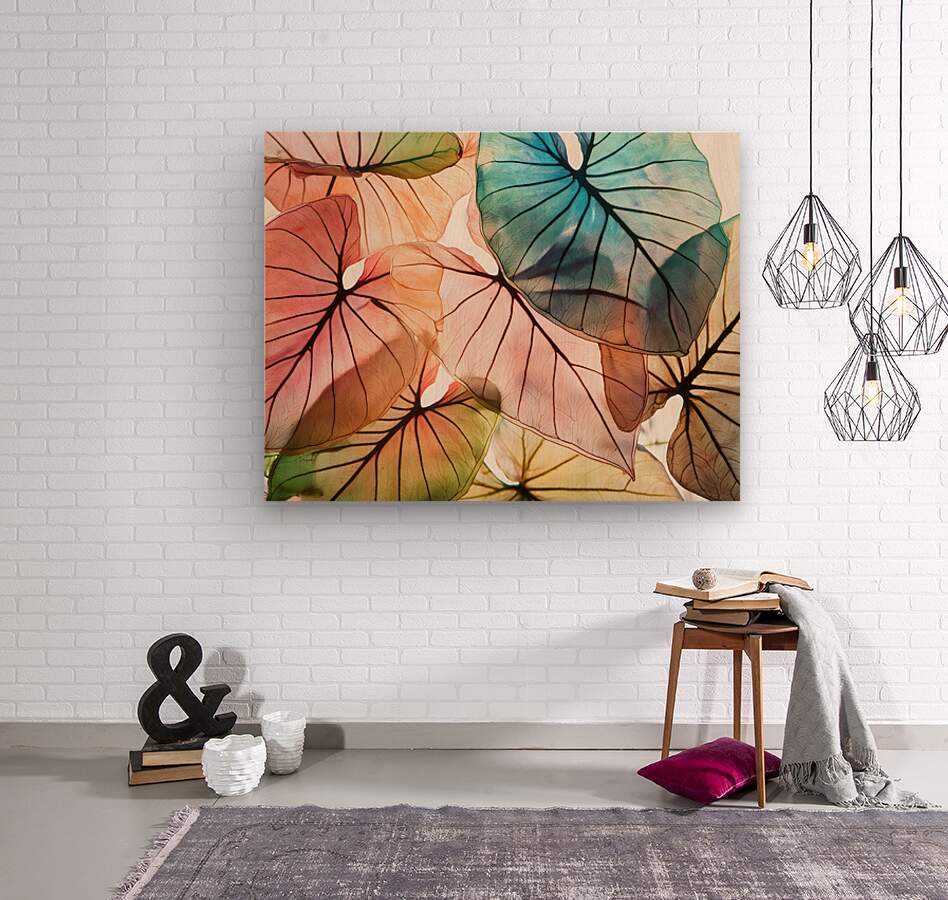 This is a colorful interpretation of the caladium plant showing the lovely detailed patterns of veins and stems in the leaves. One of a three part series, these look amazing when shown with one or more in the series or make a dynamic statement on their own. Choose your desired media size and finishes to complete your custom wall art.