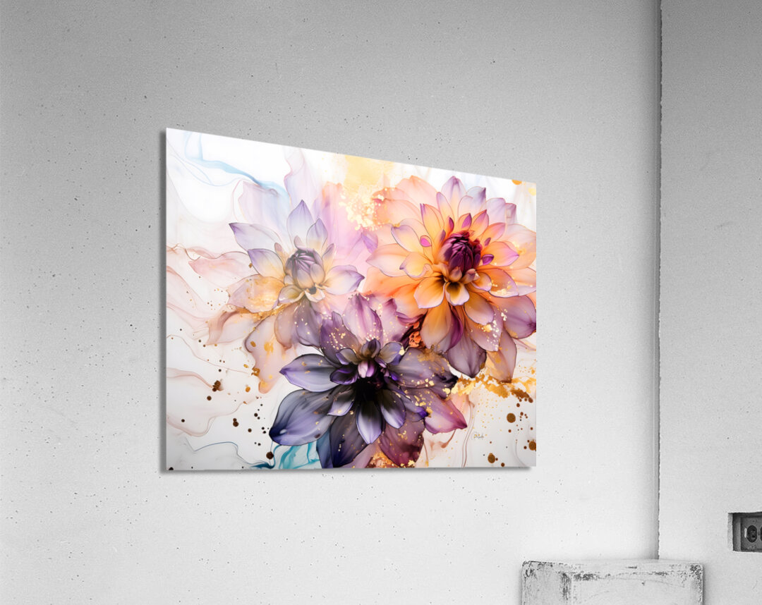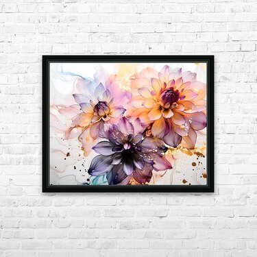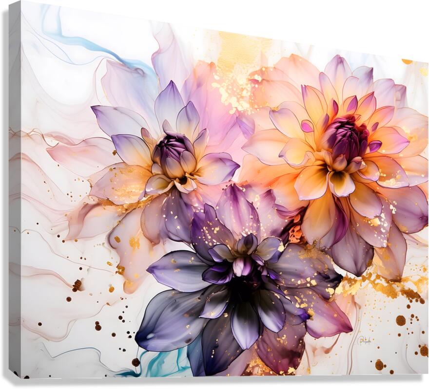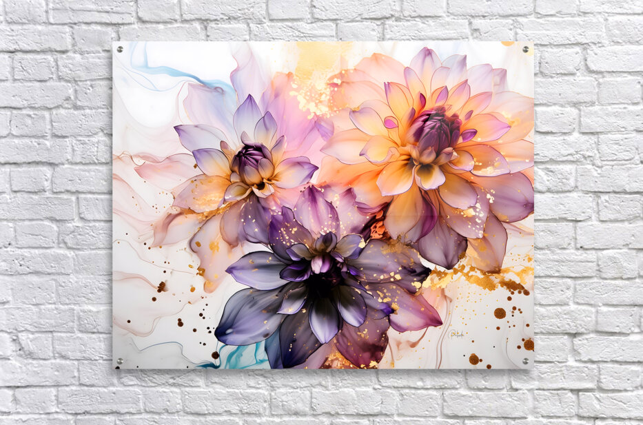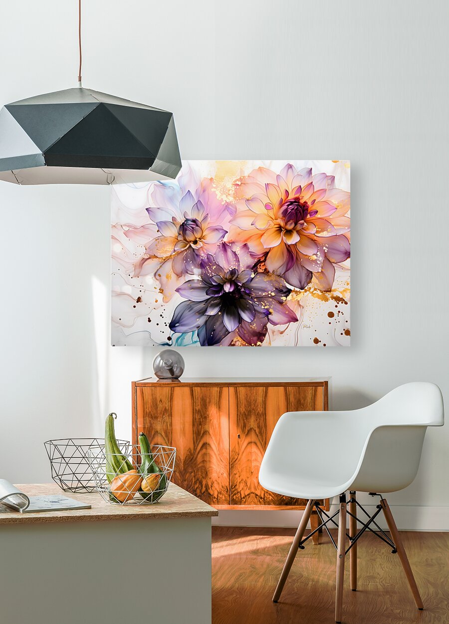These beautiful dahlias are colorful and seem to float on the page. I have sprinkled them with some gold fairy dust to add to their charm. This is number two in a series of two and looks amazing in a home or office, hanging with its mate or on its own. Choose from your preferred media sizes and finishes to show off that waiting wall.