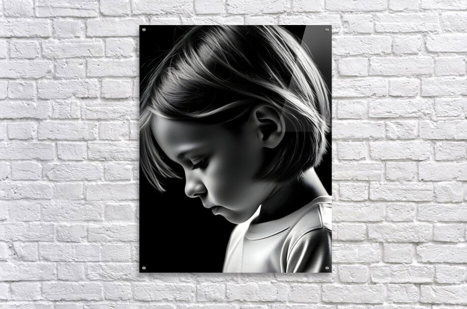 This beautiful little girl is deep in thought in this Black & White. Her short hair is pushed behind her ear and she is looking down in profile. Thi...[+]