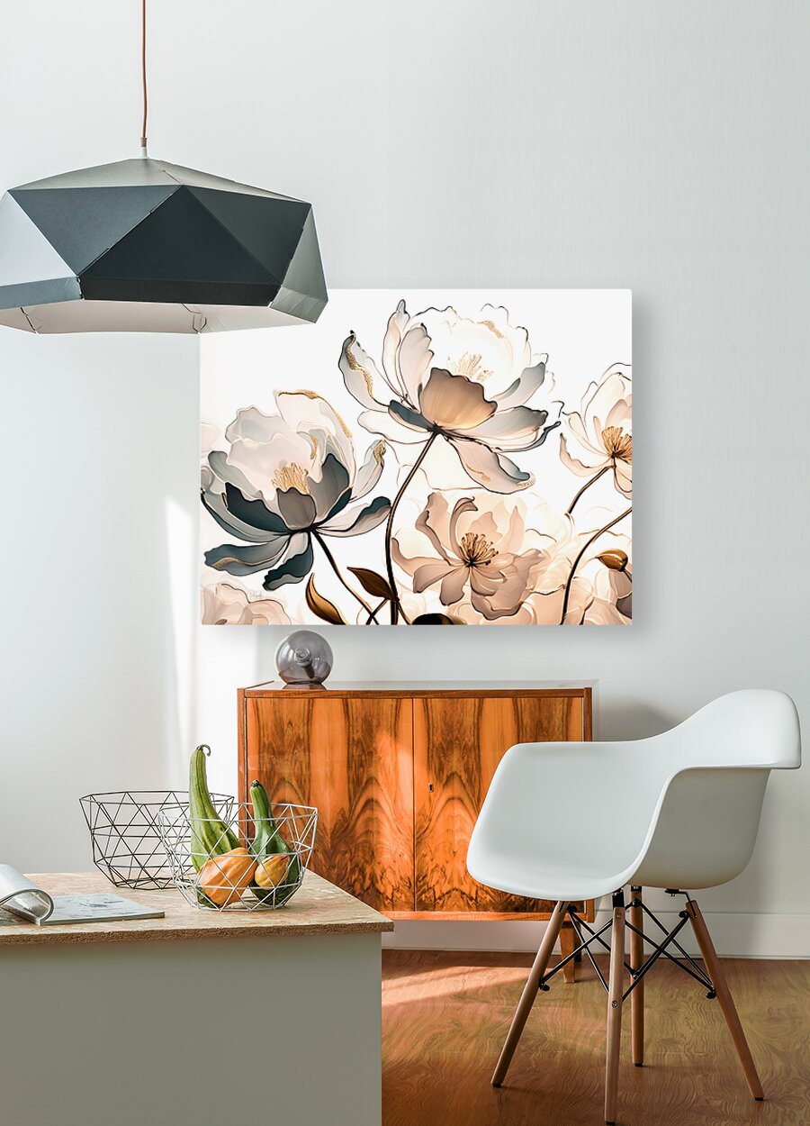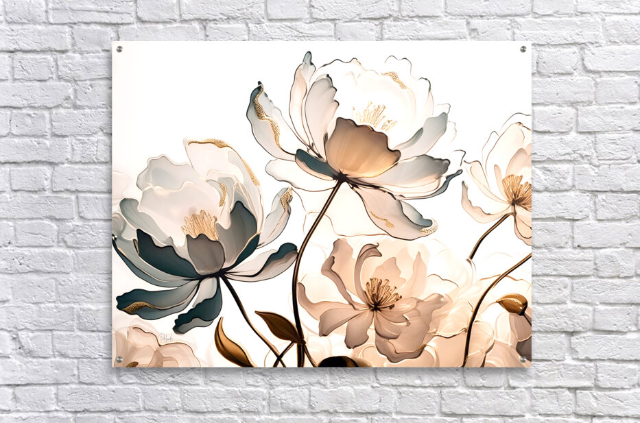 These painted golden peonies are flecked with gold and seem to dance together across the canvas. Their petals and stems make a beautiful bouquet for your home or office. Simply choose your desired media and size and then select any additional finishes to customize this artist print so its perfect for that waiting wall.
