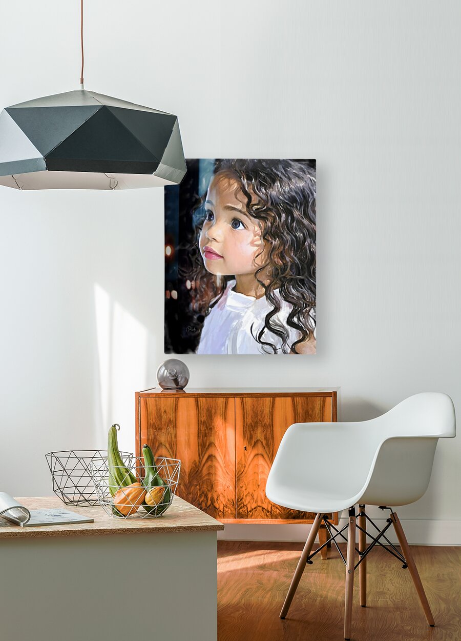 Carly is a beautiful Hispanic child with long dark ringlets of curls, blue eyes, flawless skin, and full lips. She has an expression on her face of innocence and wonder. This Pabodie Artist Print is a lovely addition to a home or office and is available in many media and sizes. All art ships free to the US and Canada and comes with a 30 day satisfaction guarantee.