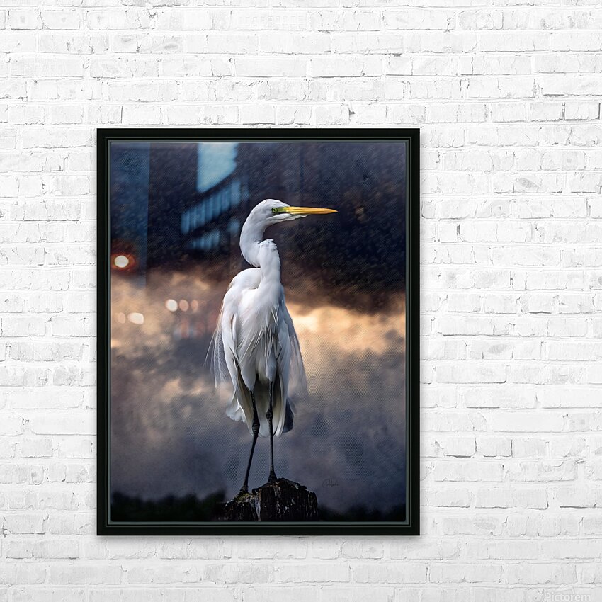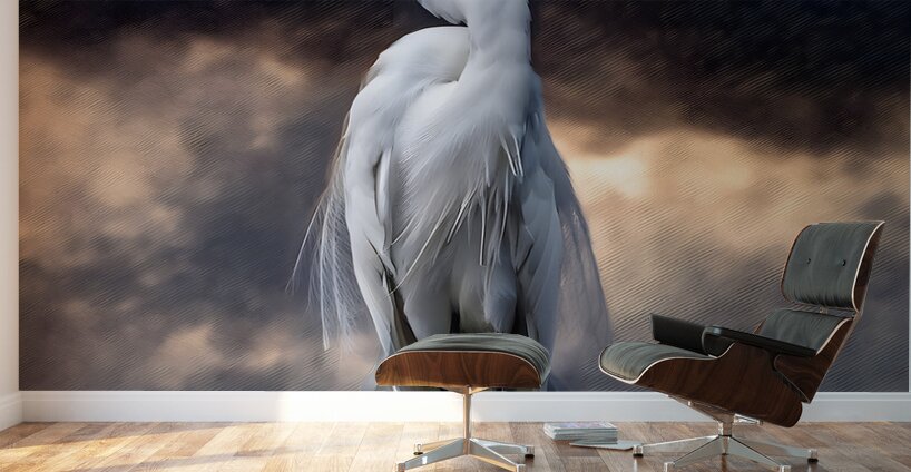 This gorgeous egret is standing beautiful and tall against a dark textured backdrop that creates a dynamic contrast with the white feathered shades of this fine bird. Bring some of natures beauty into your home or office with this Pabodie Artist Print. Choose from your choice of many media types and sizes and all art ships free to the US and Canada with 30 Day Satisfaction Guarantee.