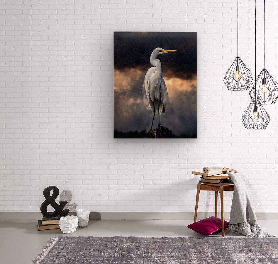 Egret Standing Tall Wood print