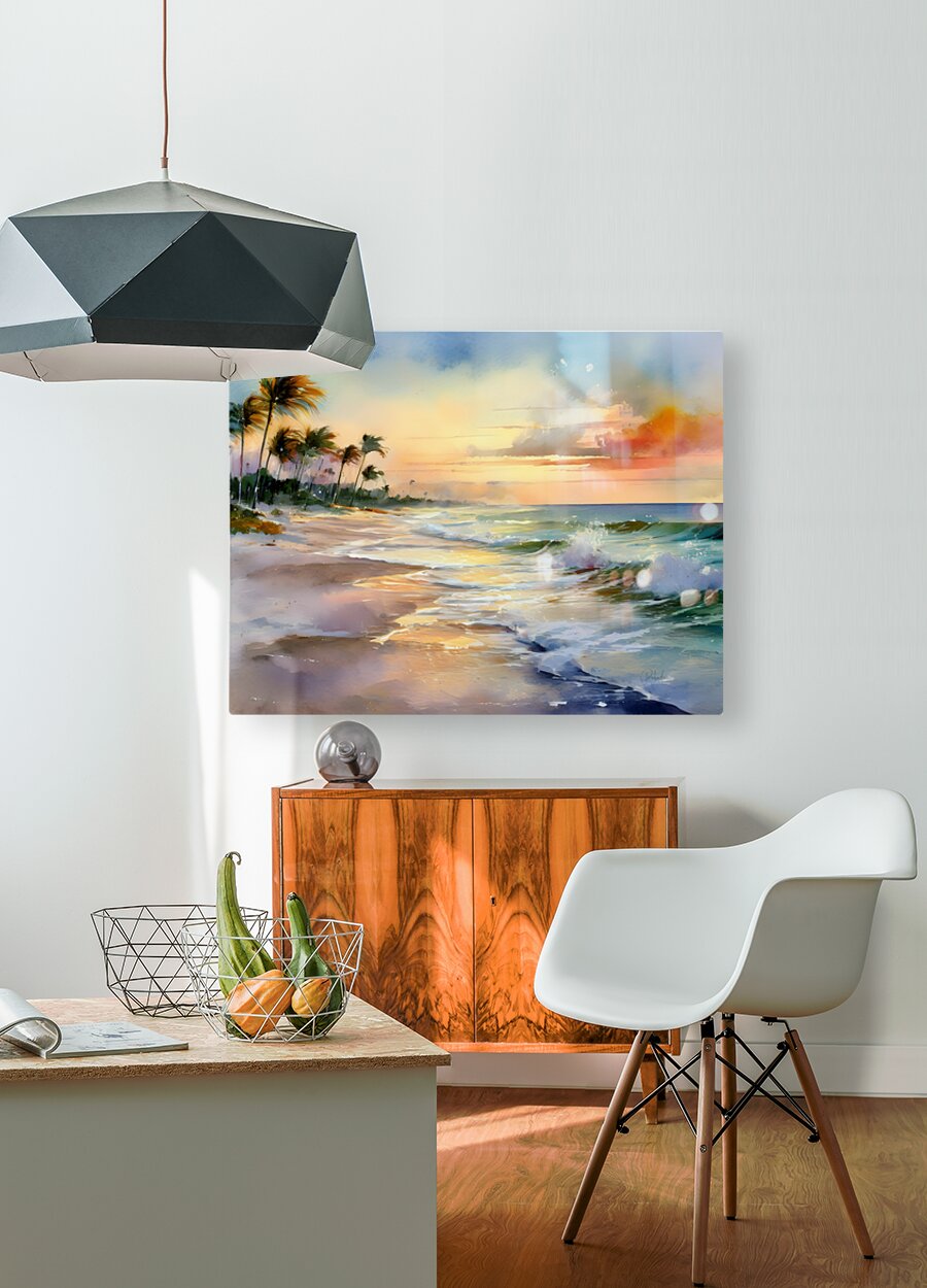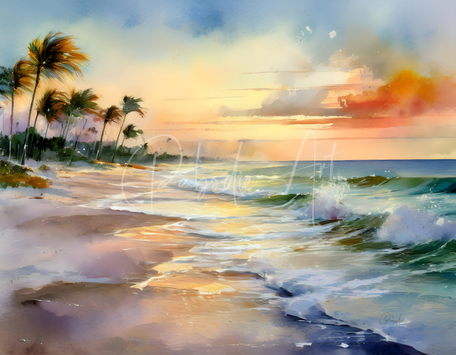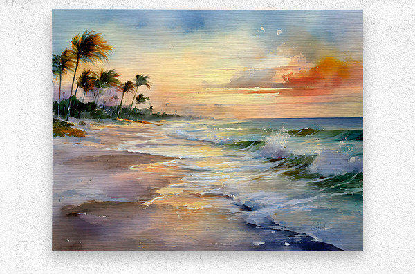 There is nothing like the soothing ocean winds blowing along the beach and palm trees. It brings with it the moist smell of salt and sea and it feels lovely as it brushes along your skin. This sunrise over the ocean waves signifies the start to another glorious sun filled day along the coastal waters and sandy beach. Choose your desired media and size and bring this artist print into your home or office today.