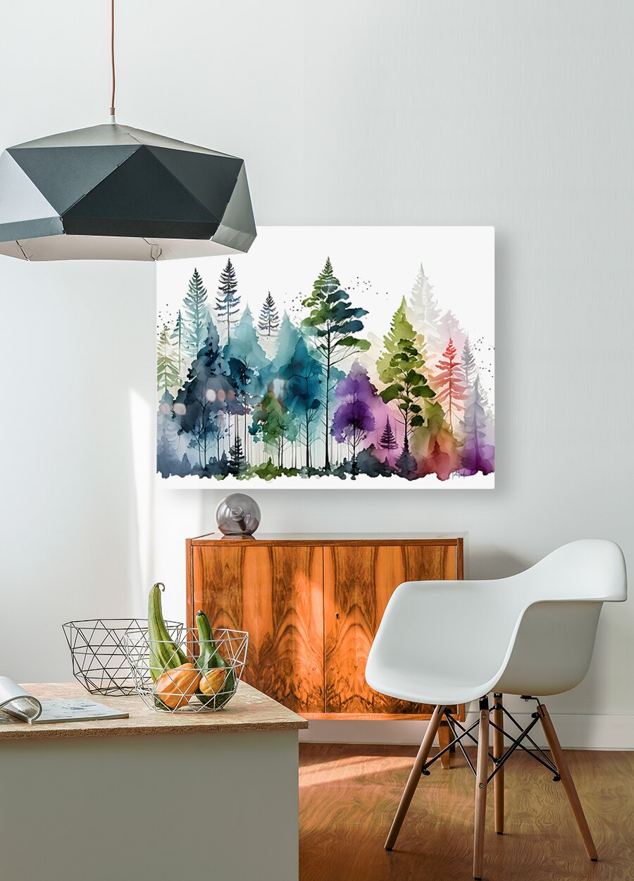 This simple watercolor highlights a forest of trees in various blended colors in the fall. Available in your favorite media and size, this looks awesome in a home, office, hotel, or gathering place. All art ships free to the US and Canada.